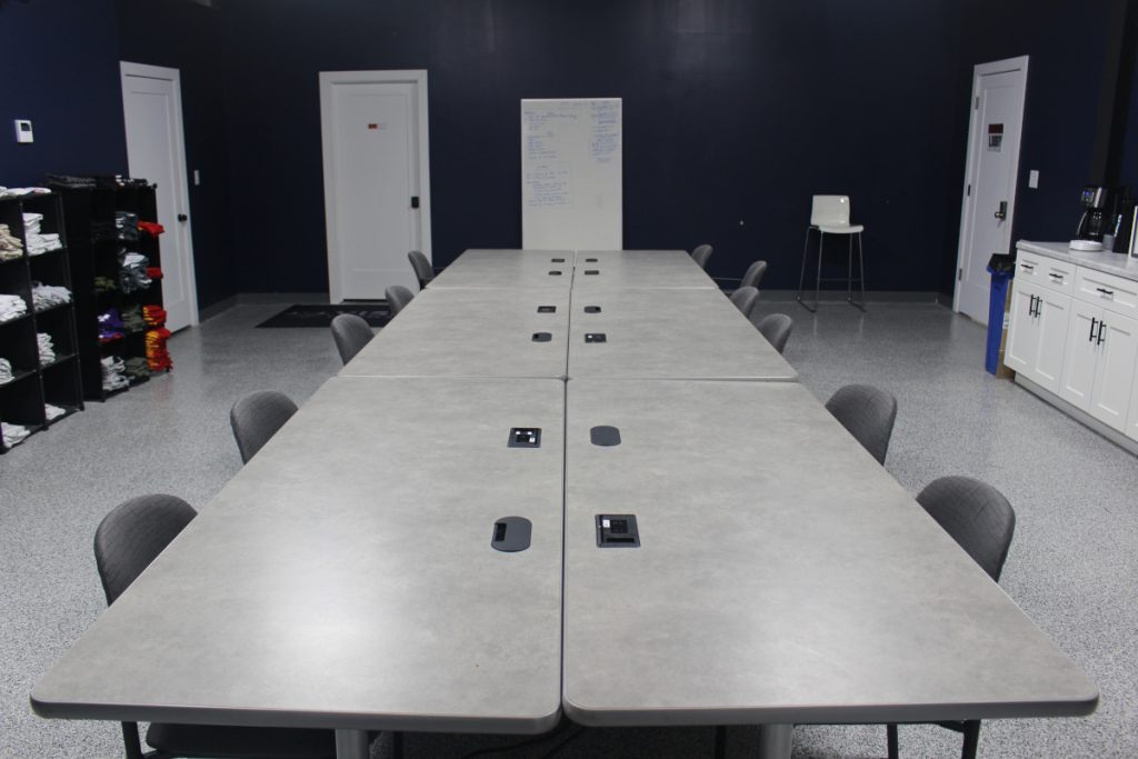 At Vision, we highly value our veteran community and have a dedicated space for our sister non-profit, Victory Through Sacrifice (VTS) which services veteran’s physical and mental health needs. This space has mats for training, equipment, meeting space with tables and chairs and offices for consulting with VTS.